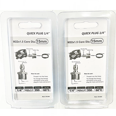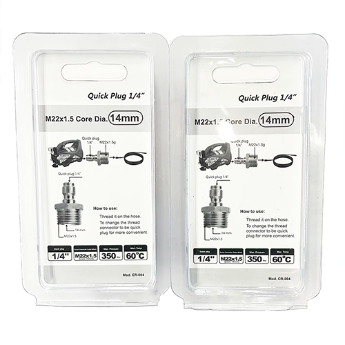 Do wyboru są dwa style, jeden to rdzeń o średnicy 14 mm, a drugi to rdzeń o średnicy 14 mm. Jest powszechnie stosowany do podłączenia węża pistoletu wysokociśnieniowego, który odgrywa ważną rolę w czyszczeniu wysokociśnieniowym.