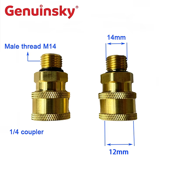 Konstrukcja wielkości 20 BSFA 1/4 "Szybkie zwolnienie jest bardzo dokładne. Jeden koniec produktu jest nić męska M14, o średnicy 14 mm, a jest również wyposażony w pierścień uszczelniająca. Drugi koniec jest łącznikiem 1/4 o średnicy 12 mm. Ten szybki połączenie może być podłączone szybko podczas procesu pracy, który jest bardzo wygodny i szybki. Szybkiem męskiego M14 jest standardowym interfejsem o czyszczeniu 12 mm. Można go więc powszechnie stosować w różnych podkładkach adaptacyjnych i innych urządzeniach. Aby w ten sposób nosić korozję. Spayer mycia węża. Zwykle scenariusze użycia to czyszczenie samochodów, czyszczenie sprzętu przemysłowego i konserwacja lub czyszczenie ścian budowlanych itp.