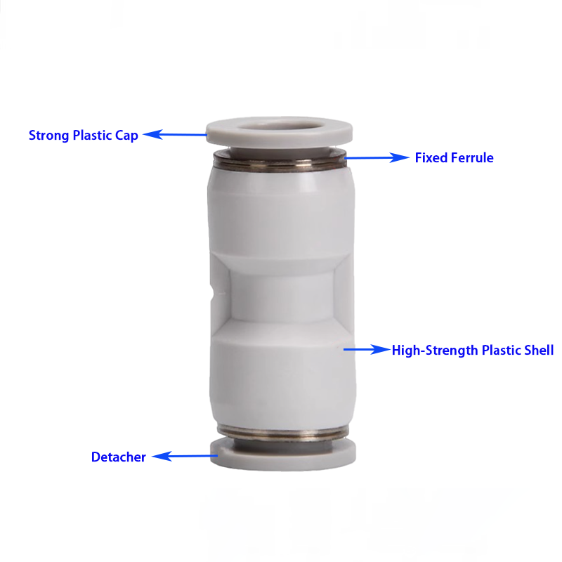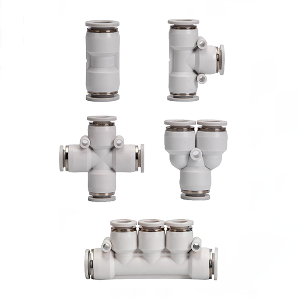 Poniżej znajduje się wprowadzenie do kilku ważnych funkcji serii szybkozłączy o wielu specyfikacjach. Pierwszą cechą jest skład samego produktu. Samo złącze składa się z czteroczęściowej konstrukcji. Pierwszą ciężką konstrukcją jest mocna plastikowa nakładka. Formowanie wtryskowe tworzyw sztucznych o wysokiej wytrzymałości sprawia, że sam produkt jest zarówno odporny na wysokie ciśnienie, jak i na zużycie, co zapewnia pewien efekt ochronny górnej części produktu. Drugą ważną konstrukcją jest stała koszulka na kartę. Stała tuleja karty wykonana ze stali nierdzewnej ma doskonałą odporność na korozję, a także bardzo mocno blokuje tchawicę, aby zapobiec jej wypadaniu podczas użytkowania. Trzecią ciężką konstrukcją jest skorupa z tworzywa sztucznego o wysokiej wytrzymałości. Główny korpus samego produktu wykonany jest ze wzmocnionego tworzywa konstrukcyjnego, które ma wyjątkową odporność na ciśnienie i dobrą izolację. Czwartą ważną strukturą jest wyzwalacz. Konstrukcja zwalniacza pozwala operatorowi na łatwy demontaż tchawicy poprzez naciśnięcie. Jednocześnie konstrukcja jest ergonomiczna i sprawia, że obsługa jest wygodniejsza. Drugą cechą jest pięć form strukturalnych produktu. Są to typy proste, trójdrogowe typu T, czterodrogowe typu krzyżowego, trójdrogowe typu Y i typu wielokierunkowego. Te formy konstrukcyjne obejmują pojedyncze połączenia po złożone akrobacje, zasadniczo pokrywając potrzeby układu rurociągów pneumatycznych w różnych scenariuszach w sposób wszechstronny, co sprawia, że projekt systemu jest elastyczny i wydajny. Trzecią cechą jest dostosowanie do wielu specyfikacji. Złącze obsługuje sześć typów zewnętrznych średnic tchawicy: 4 mm, 6 mm, 8 mm, 10 mm, 12 mm i 16 mm, które pasują do typowych rurek tchawiczych i nylonowych z PU oraz dokładnie pasują do tchawicy i sprzętu. Od komponentów mikropneumatycznych po sprzęt na dużą skalę, można zaspokoić potrzeby w zakresie średnic rur gazowych.