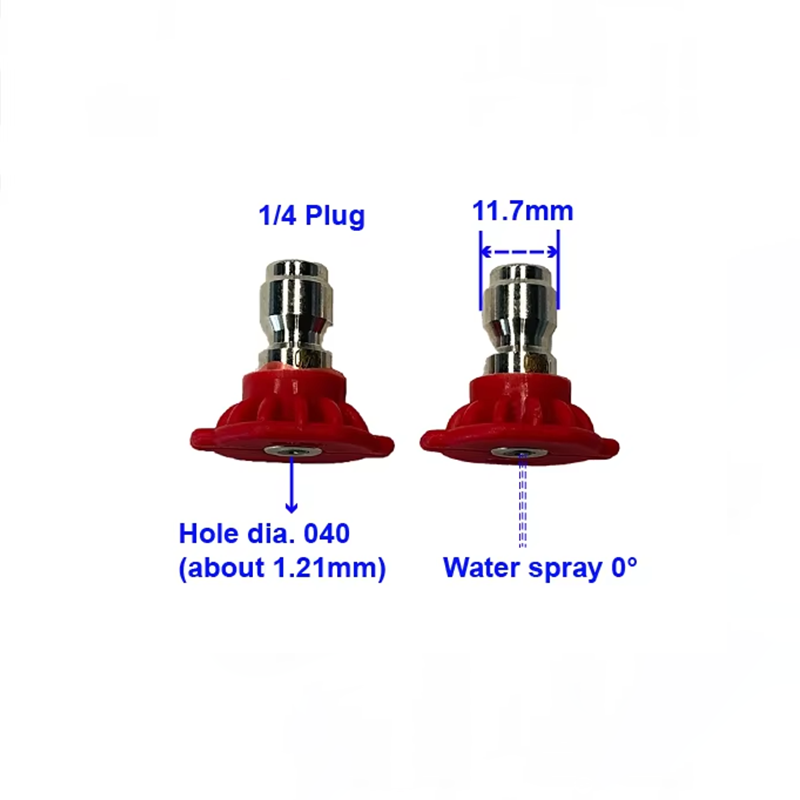 Kolorowa kombinacja dysz o szybkim wydaniu 1/4 cala pod wysokim ciśnieniem przynosi wyższą wydajność i lepsze wyniki do operacji czyszczenia z jej unikalnymi zaletami. Produkt jest wyposażony w cztery różne kąty (0 °, 15 °, 25 °, 40 °), a dysza z różnych scenariuszy z różnorodności. Scenariusze czyszczenia, niezależnie od tego, czy jest to silna koncentracja do dokładnego usunięcia plam lub dużego obszaru spłukiwania. Operacje.