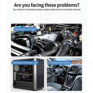 Szczelina między siedzeniami samochodu, schowek w drzwiach lub kanał klimatyzacji i inne miejsca to obszary ciężkich katastrof, w których ukryty jest brud i kamień. Dzięki temu zestawowi pistoletów do odkurzania z łatwością usuniesz uporczywy kurz, nie powodując przy tym uszkodzeń gumowych rurek i elementów elektronicznych w samochodzie. Szybkozłączka na obu końcach tchawicy jest również bardzo praktyczna. Konstrukcja wtyczki nie wymaga innych skomplikowanych narzędzi. Można go szybko podłączyć do pokładowej pompy powietrza lub przenośnej sprężarki powietrza. Prace odpylające można zakończyć w dowolnym momencie, bez skomplikowanych operacji, co znacznie poprawia efektywność pracy.