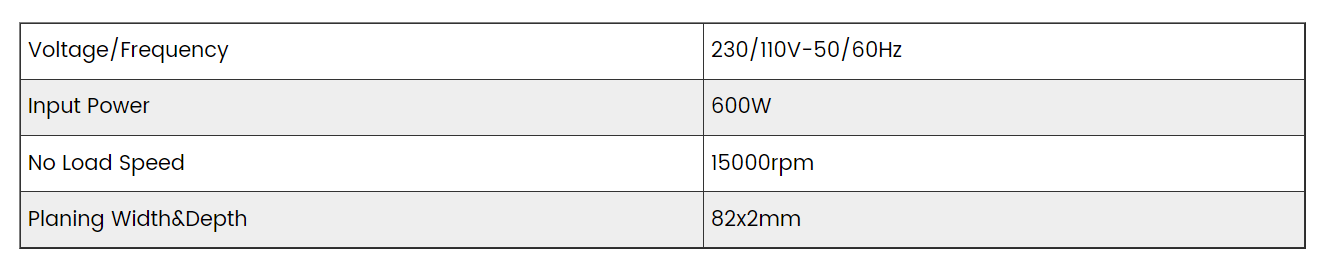 Dlaczego strugarka elektryczna 82x2mm jest wydajnym narzędziem do obróbki drewna, można przedstawić z kilku aspektów. Sądząc po podstawowych parametrach produktu, po pierwsze, szerokie napięcie 230/110 V-50/60 Hz można dostosować nie tylko do cywilnego systemu zasilania 220 V w Chinach, ale także do zagranicznego środowiska pracy 110 V, a także różnicę częstotliwości 50/60 Hz między różnymi regionami, więc bez względu na to, czy jest to zapotrzebowanie na prace domowe, czy korzystanie z importowanego sprzętu, można uzyskać dobre połączenie, zmniejszając niedopasowanie między napięciem a napięciem częstotliwość. Po drugie, znamionowa moc wejściowa wynosząca 600 W może zapewnić ciągłą stabilną moc wyjściową sprzętu, a także wystarczająca rezerwa mocy do stabilnego strugania w obliczu stosunkowo twardych i grubych materiałów, co pozwala uniknąć niestabilności pracy z powodu nadmiernego obciążenia, dzięki czemu wydajność i jakość pracy mogą być jednocześnie online. Po trzecie, prędkość bez obciążenia wynosząca 15 000 obr./min może sprawić, że strugarka będzie miała dużą prędkość linii cięcia, co może szybko zaplanować gładkie cięcie podczas obróbki drewna. Jednocześnie prędkość obróbki materiałów może być bardzo duża, dlatego jest to bardzo ważne przy przetwarzaniu dużej ilości pracy, co znacznie poprawia wydajność pracy. Po czwarte, szerokość strugania wynosząca 82 mm może zmniejszyć liczbę przejazdów w obie strony podczas obróbki stosunkowo szerokich powierzchni drewnianych, co oszczędza czas. Głębokość strugania wynosząca 2 mm może zaspokoić dwukierunkowe potrzeby obróbki zgrubnej i wykańczającej, która może nie tylko przeprowadzić dokładne przycinanie, ale także usunąć nadmiar drewna podczas obróbki. Można zauważyć, że ta strugarka elektryczna o wymiarach 82x2 mm ma wiele podstawowych zalet, dlatego pełni ważne obowiązki w dziedzinie obróbki drewna.