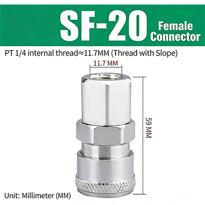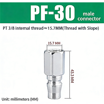 Szybkozłącza typu C firmy Genuinsky PF–SF z gwintem JIS PT charakteryzują się konstrukcją szybkozłącza typu C, umożliwiającą swobodne łączenie złączy męskich i żeńskich. Galwanizowana powierzchnia i miedziany rdzeń zaworu zwiększają trwałość produktu. Jako profesjonalny chiński dostawca akcesoriów do narzędzi pneumatycznych, Genuinsky produkuje swoje produkty w pełnej zgodności ze standardami. Seria ta oferuje pełny zakres specyfikacji, umożliwiający precyzyjne dopasowanie do różnych rurociągów pneumatycznych.