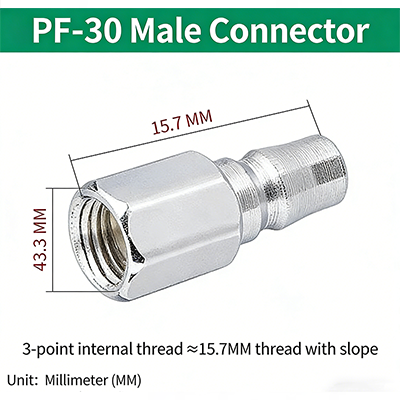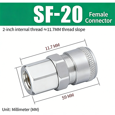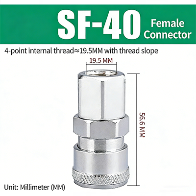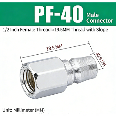 Szybkozłącza typu C serii PF–SF z gwintem JIS PT mają konstrukcję szybkozłącza typu C. Głowice męską i żeńską można dowolnie dopasowywać, a także można je podłączać i łączyć, co jest bardzo wygodne. W złączu zastosowano obróbkę galwaniczną powierzchni, z wewnętrznym rdzeniem miedzianym, który jest nie tylko odporny na korozję, ale także odporny na zużycie, co poprawia trwałość złącza i wydłuża jego żywotność.