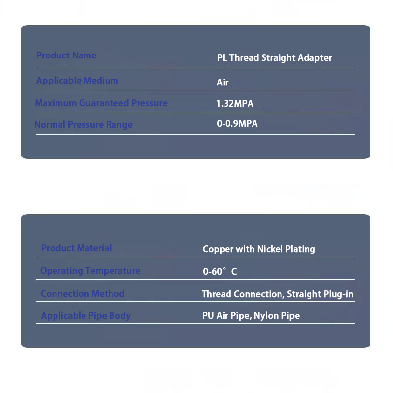 Adapter prosty z gwintem PL i rurka mogą nawet swobodnie obracać się o 360° po instalacji, co oznacza, że mogą przełamać ograniczenia tradycyjnego mocowania kąta złącza. Można go dostosować do złożonego trendu rurociągu, a obowiązujące scenariusze produktu są bardziej rozbudowane. Jednocześnie produkt ma tolerancję na dostosowanie się do różnych scenariuszy. Na przykład może również utrzymać stabilną wydajność na linii produkcyjnej w wysokich temperaturach, ponieważ zakres tolerancji samego produktu mieści się w zakresie temperatur 0-60 ° C. Ponadto maksymalne gwarantowane ciśnienie może osiągnąć 1,32 MPa, a normalny zakres ciśnienia roboczego wynosi 0-0,9 MPa, co może w pełni pokryć stabilną pracę sprzętu wymagającego warunków pracy pod wysokim ciśnieniem, takiego jak narzędzia pneumatyczne i cylindry automatyczne.