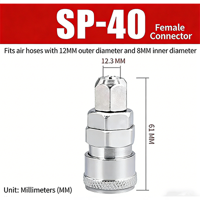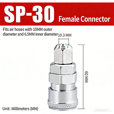 Szybkozłącza typu C serii PP–SP z gwintem JIS PT mają konstrukcję szybkozłącza typu C. Głowice męską i żeńską można dowolnie dopasowywać, a także można je podłączać i łączyć, co jest bardzo wygodne. W złączu zastosowano obróbkę galwaniczną powierzchniową z wewnętrznym rdzeniem miedzianym, który jest nie tylko odporny na korozję, ale także odporny na zużycie, co poprawia trwałość złącza i wydłuża jego żywotność.