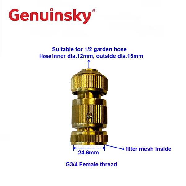 Jest to zestaw elementów łączących końcówkę wlotową wody myjki wysokociśnieniowej. Konkretnym krokiem jest podłączenie węża dopływowego wody o średnicy wewnętrznej 1/2 cala odpowiadającego wymaganiom z wejściem wody myjki wysokociśnieniowej poprzez złącze niskociśnieniowe, wtyczka 20bar z gwintem 3/4, który może być stosowany podczas sprzątania ogrodu. Sceny mycia i sprzątania. To złącze wlotowe myjki ciśnieniowej ma wewnątrz siatkę filtra. Zadaniem wewnętrznej siatki filtrującej jest przechwytywanie zanieczyszczeń, cząstek, mułu i innych zanieczyszczeń wewnątrz części w transporcie płynu. Podczas barwienia zanieczyszczenia te spowodują zablokowanie i zużycie głównych elementów. Nadaje się głównie do scenariuszy czyszczenia ogrodu. Podłoże, takie jak podłoga cementowa, droga łupkowa i antykorozyjna drewniana platforma, to obszar, który należy często czyścić, aby złącze wlotu wody mogło uniknąć odpadnięcia interfejsu lub wycieku wody przez maszynę mobilną. Interfejs ma konstrukcję antypoślizgową i zatrzaskową, która może zapobiec poluzowaniu węża. Jednocześnie niektóre przybory ogrodnicze, takie jak stojaki na kwiaty, doniczki itp., można również czyścić za pomocą elastycznej pralki.