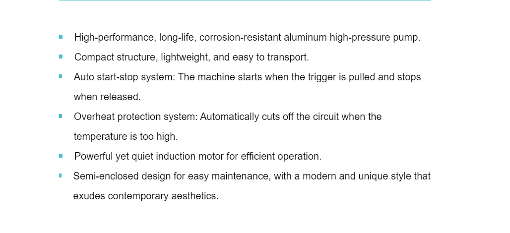 Po drugie, przenośna myjka wysokociśnieniowa STG-ROCK-K ma zwartą konstrukcję jako całość, a całkowita masa ciała jest bardzo lekka. Waga netto K3 wynosi 10 kg, a waga netto K4 wynosi 12 kg, oba są wyposażone w uchwyt u góry, co jest wygodne. Użytkownicy mogą przemieszczać się w zależności od potrzeb związanych z czyszczeniem, z domu na zewnątrz. Jednocześnie urządzenie wyposażone jest także w inteligentne funkcje automatycznego start-stop oraz zabezpieczenie przed przegrzaniem. Aby rozpocząć, pociągnij spust pistoletu natryskowego i zwolnij spust, aby zatrzymać. Nie jest wymagany ręczny przełącznik, co czyni obsługę wygodniejszą. Zabezpieczenie przed przegrzaniem pozwala urządzeniu automatycznie odciąć obwód, gdy temperatura jest zbyt wysoka, uniknąć przeciążenia powodującego uszkodzenie urządzenia, poprawić ogólne bezpieczeństwo oraz sprawić, że produkt będzie bezpieczniejszy i bardziej bezproblemowy podczas użytkowania. Półzamknięta konstrukcja kadłuba jest również bardzo humanizowana, co jest wygodne w codziennej konserwacji i umożliwia łatwe sprawdzanie części i czyszczenie filtra.